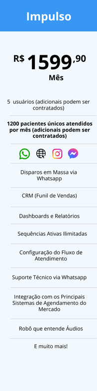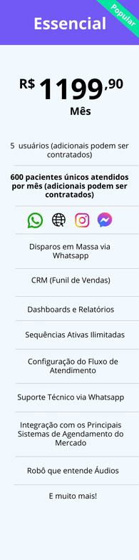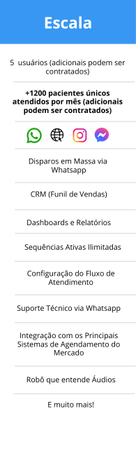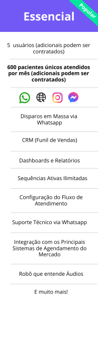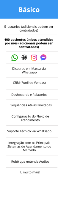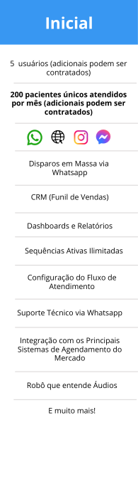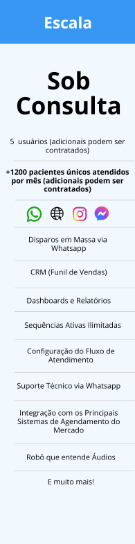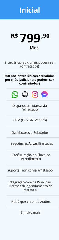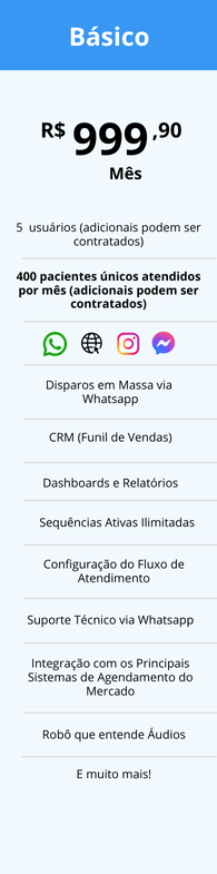 200 pacientes únicos atendidos por mês (adicionais podem ser contratados)